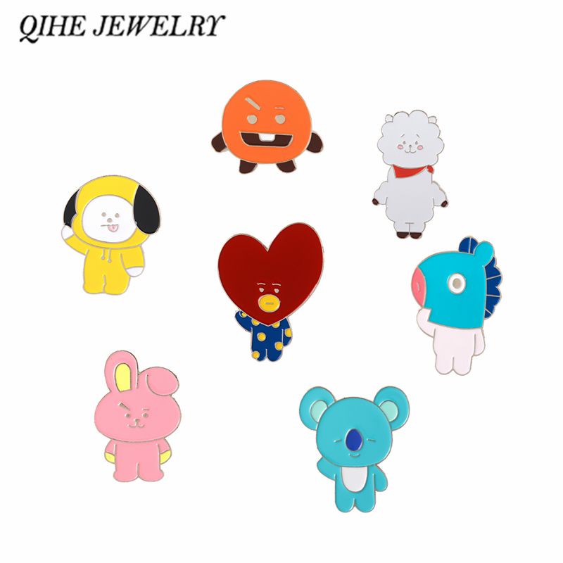 2019 Qihe Jewelry Bts Enamel Pins Kawaii Bt21 Characters Brooches